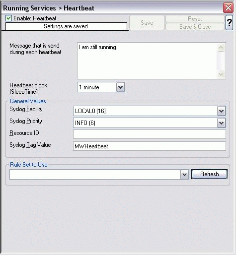 The heartbeat process can be used to continuously check if everything is running well. It generates an information unit every specified time interval. That information unit can be forward to a different system. If it does not receive additional packets within the configured interval, it can doubt that the sender is either in trouble or already stopped running.