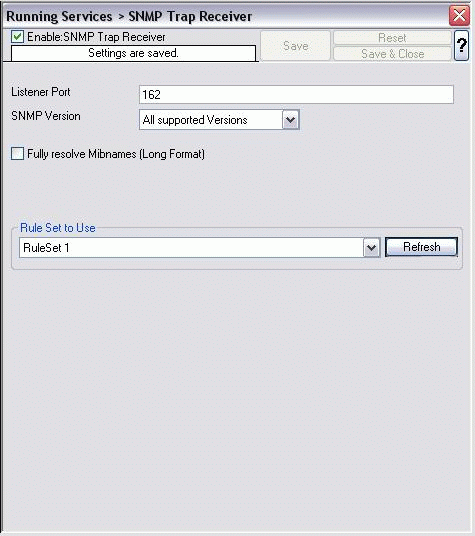 SNMP Trap Receiver service allows you to receive SNMP messages. A rough description of a Trap is that it is somewhat like a Syslog message, just over another protocol (SNMP). A trap is generated when the device feels it should do so and it contains the information that the device feels should be transmitted. It also contains some (few) standard items, as the version, community etc.