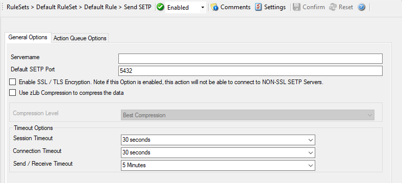 With the “Send SETP” action, messages can be sent to a SETP server.