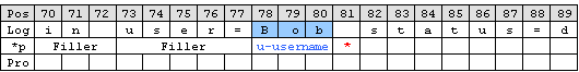 After locating the start position of the username ‘Word’ parse type can be used. ‘Word’ parses as long as a space sign is found. Enter ‘u-username’ as property.