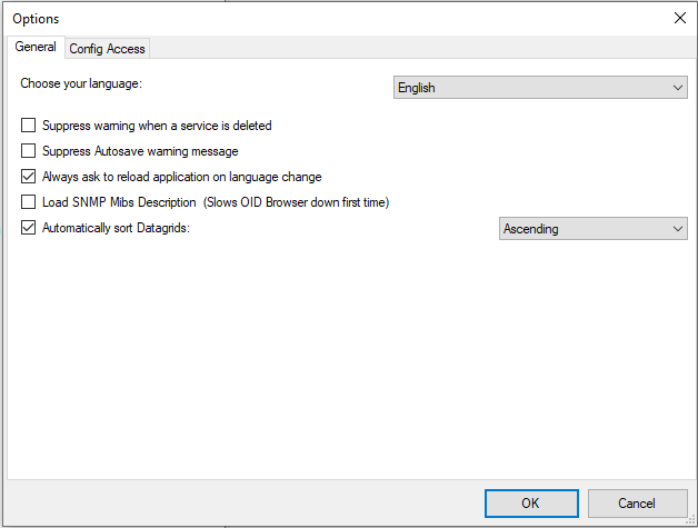There are several options, that refer to the configuration client and not to the service. These can be found under File -> Options