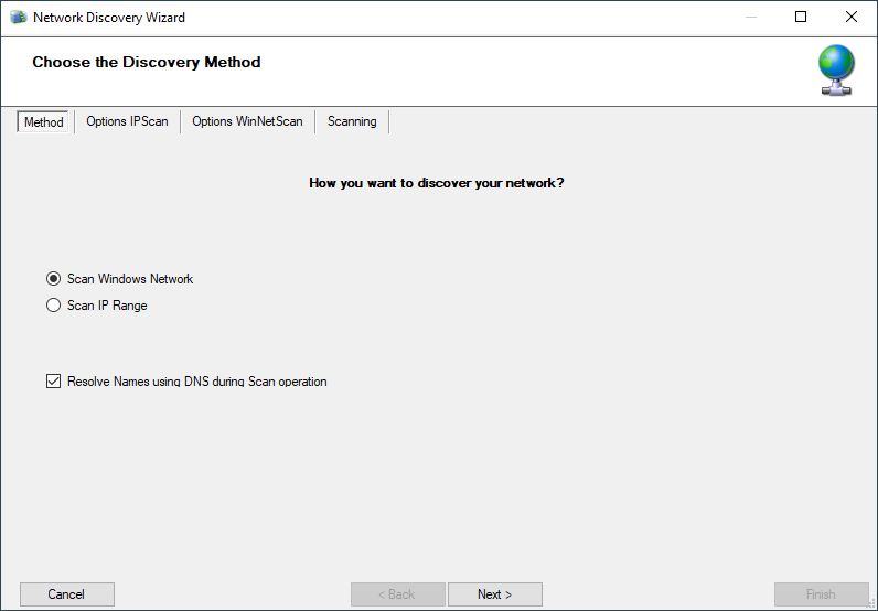 Opens up a Wizard that will help you discover devices in your local network. Once the wizard has scanned your network, it will show Windows compatible devices it has found. Please note that this will require Windows Management Instrumentation (WMI) access to the remote machines which may be disabled in Windows Firewalls by default.