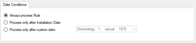 Rule processing can be bound to a specific or the installation date. By default a Rule will always be processed.