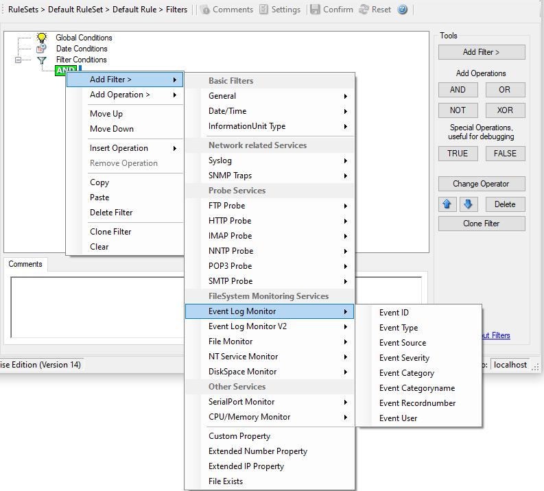 Filter Conditions - Event Log Monitor V1*