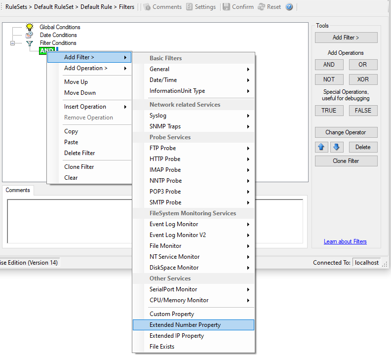 As the name suggests it is a “Extended Number Property”. Internally in MonitorWare Agent all values are stored in properties. For example the main message is stored in a property called “msg”. By using this dialog you can access properties which are dynamic (Like those from SNMP Trap Monitor when using V2 protocol).
