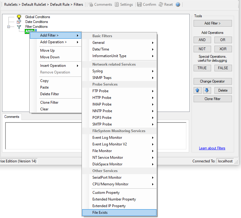 With this Filter you can simply check if a file exists or not. You can directly enter the file and its location or you can use the browse-button to find it.