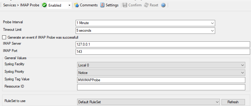 When checked, an event is generated every time. If unchecked, it is generated only when the IMAP probe fails. The most common option is to leave it unchecked to catch events upon a failed IMAP probe.