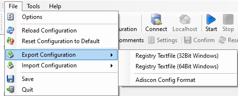 When working on a support incident, it is often extremely helpful to re-create a customer environment in the Adiscon lab. To aid in this process, we have added functionality to export an exact snapshot of a configuration. There are multiple methods available. Adiscon Support prefers Adiscon Config Format. Please note that when we have received your file, we are also able to make adjustments (if needed) and provide those back to you. This is a very helpful support tool.