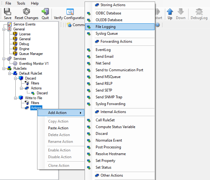 To do so, expand “Write to File” and right-click “Actions”. Select “Add Action”, then “File Logging” as can be seen below:
