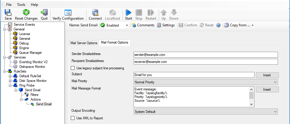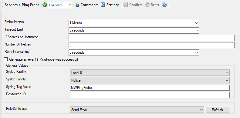 Now save the settings and restart the service. Whenever the Ping Probe fails, you receive a mail. This mail looks as follows: