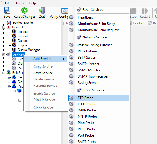 In our sample, we probe a FTP server, which typically listens to port 21 (the default port for FTP). We send an email alert if the FTP probe cannot connect successfully to the FTP server.