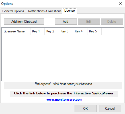 InterActive SyslogViewer - License Tab*