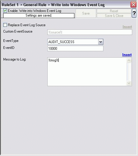 MonitorWare Agent Features – Write to Event Log